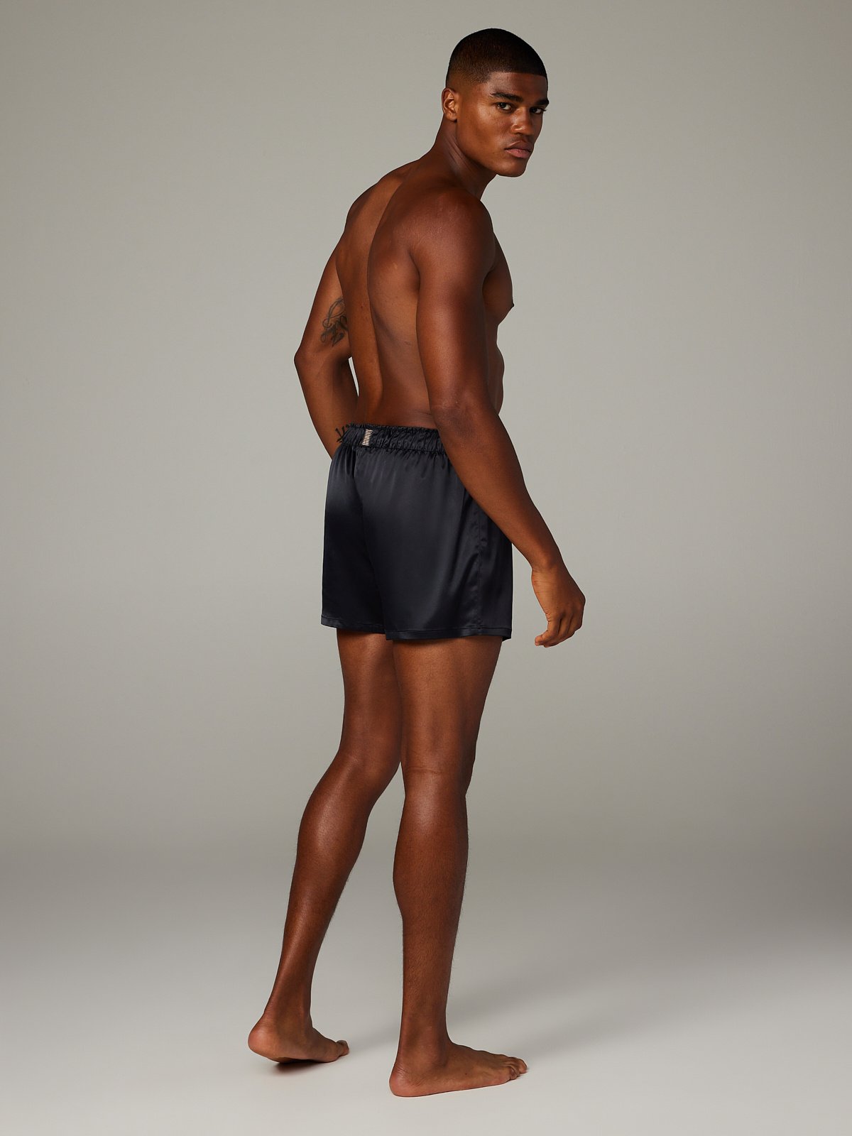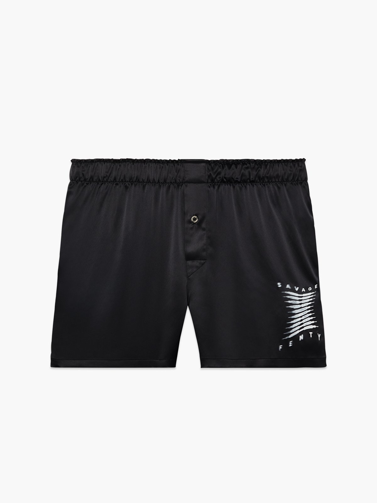 - BoxerRegular fitSatin bodyLogo on left legElastic waistbandFunctional fly with exposed button closureWoven lurex logo label at center-back waistbandBody: 95% Polyester, 5% ElastaneMachine wash cold water, gentle cycle, wash inside out, tumble dry lowImported