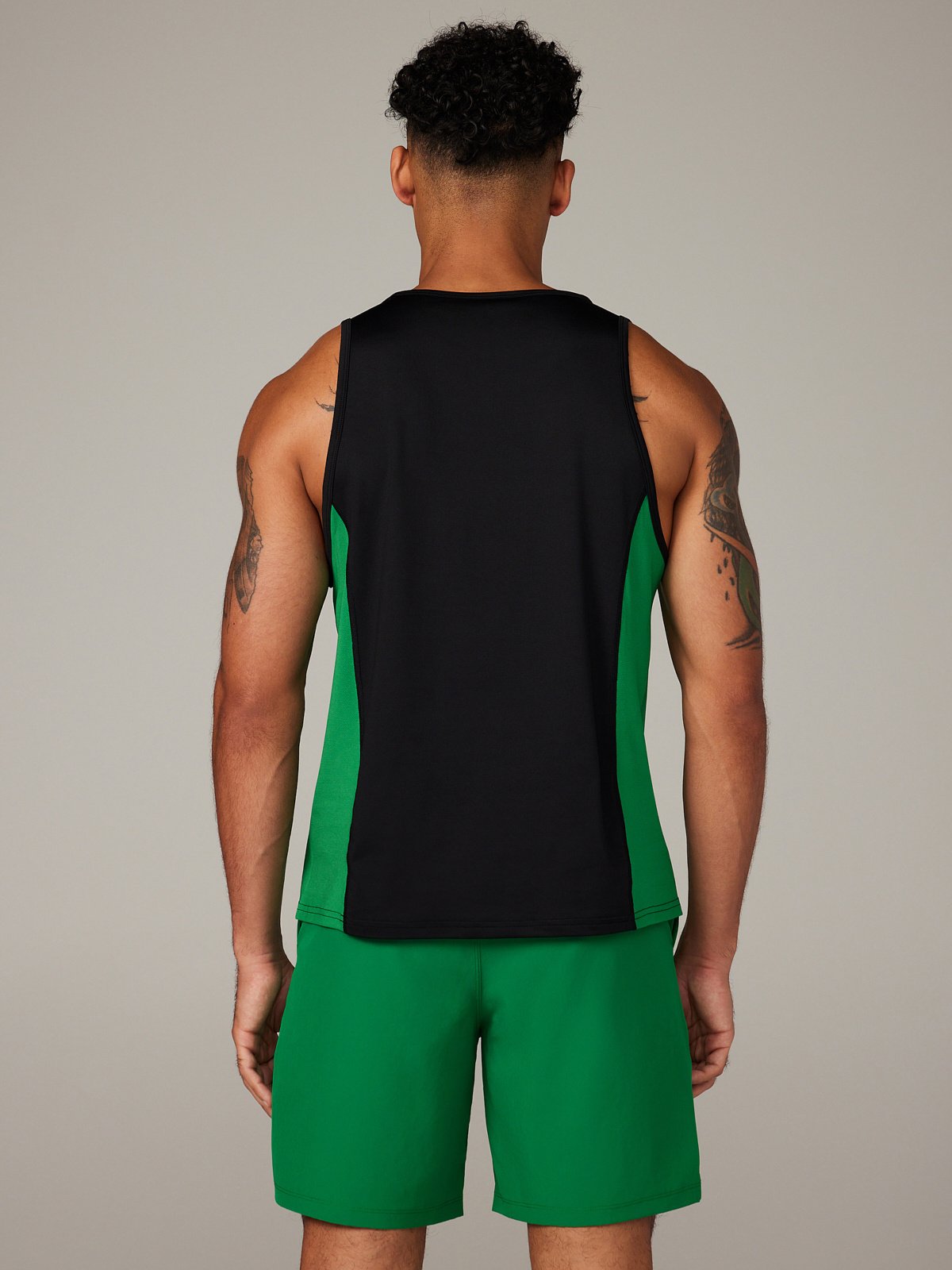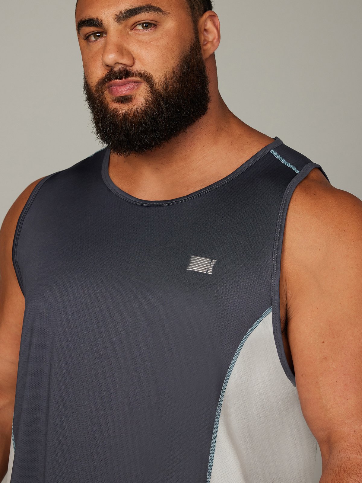 Our Breakout Base Layer Tank features colorblock side panels and a metallic X logo graphic at the left chest.