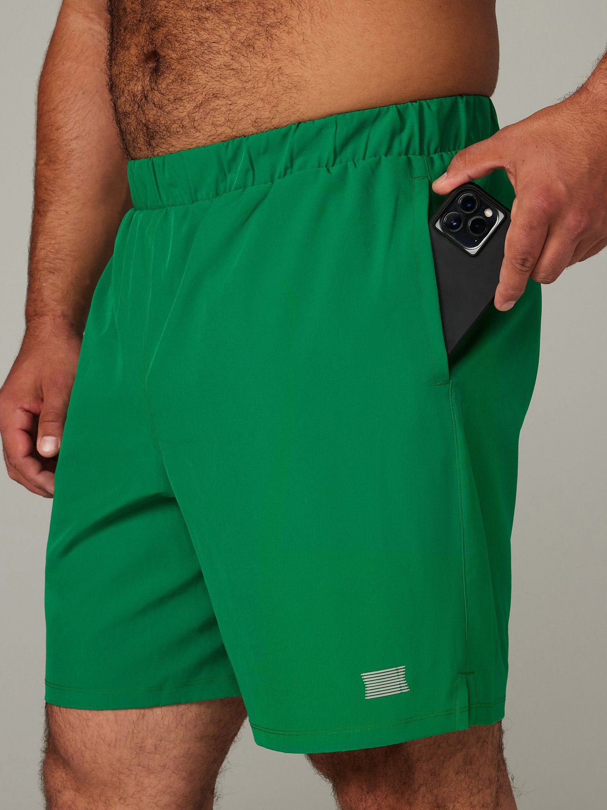 Our Breakout Base Layer Unlined Short features side pockets, a hidden phone pocket, and a metallic X logo graphic at the left leg.