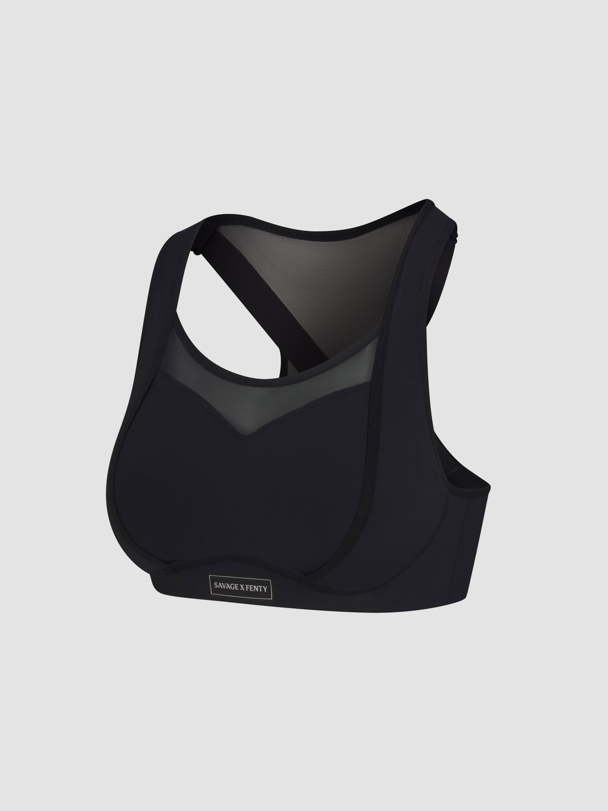 • Lined and interlined with power-mesh at front neckline, sling, and back for added support