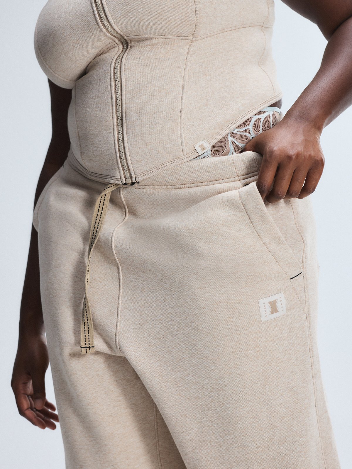 Our Cargo Fleece Barrel Leg Sweatpant features a high-waist silhouette made from cozy fleece fabric, an adjustable elastic waistband with a drawstring buckle, contrast stitching, functional pockets, and our signature “X” logo label on the front-left leg.