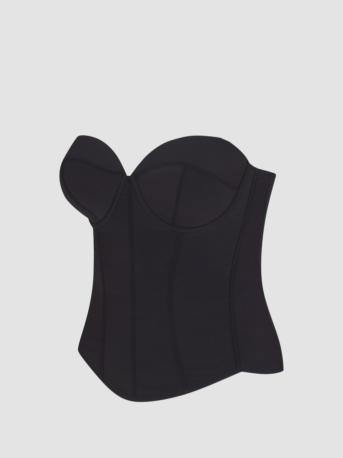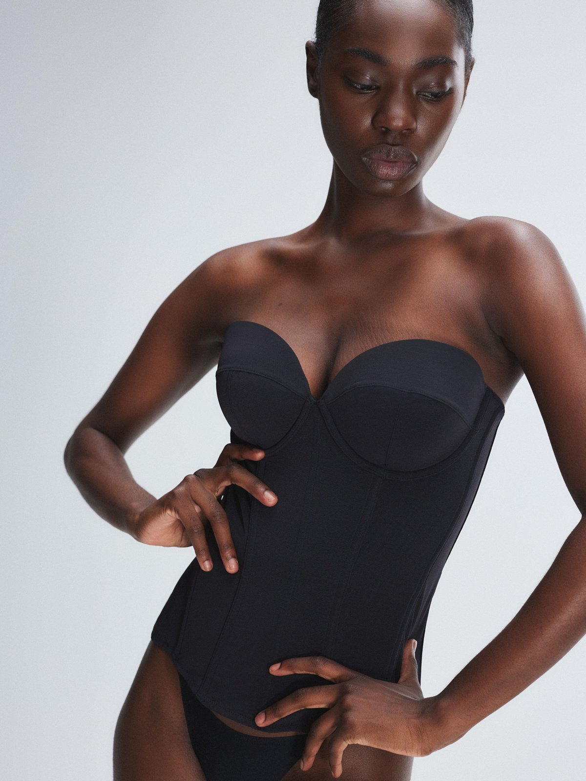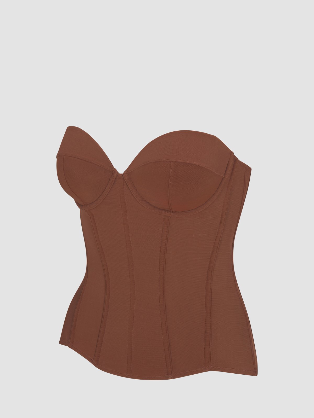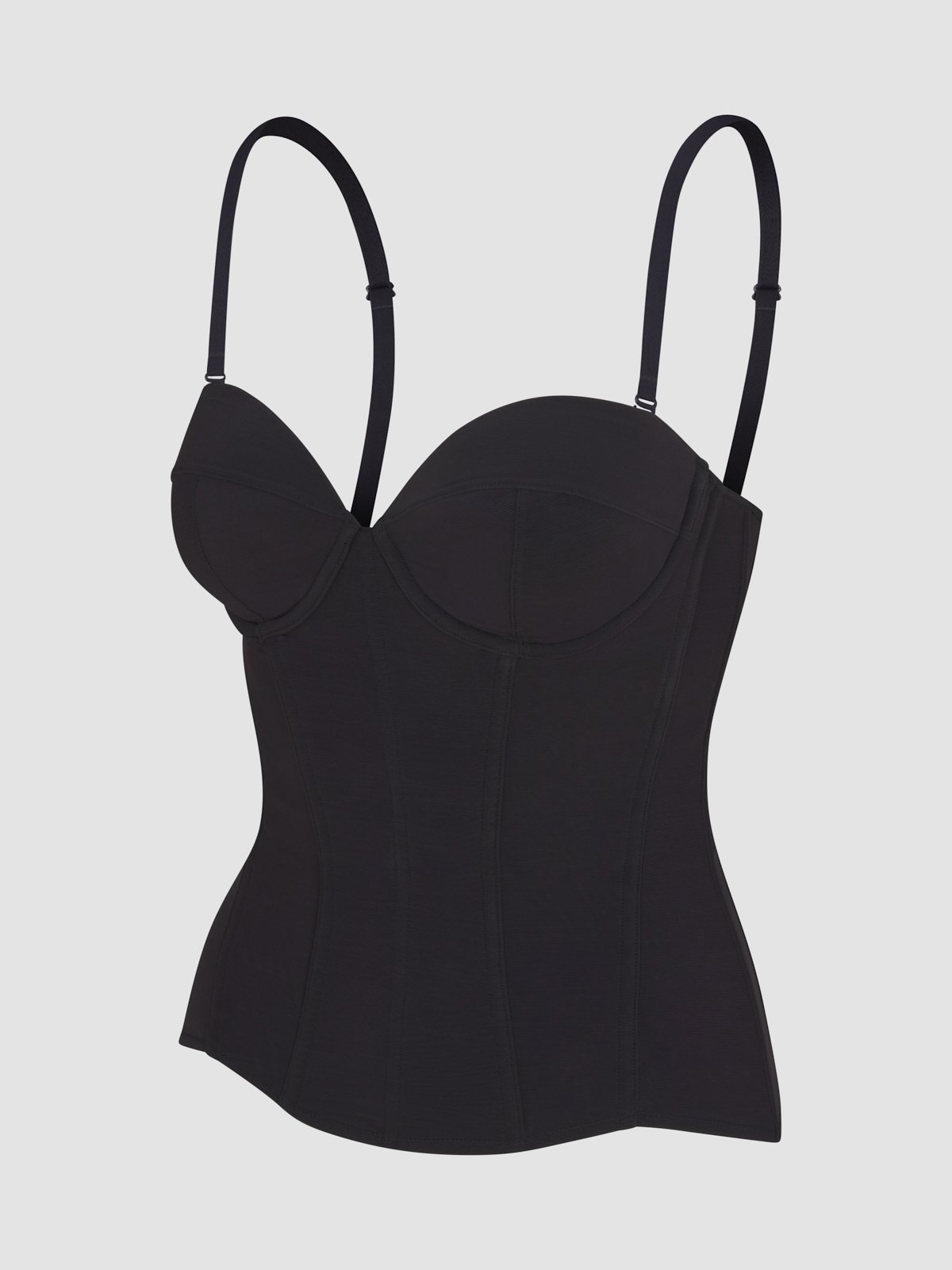 Be the center of attention in our Centre Fold Corset, featuring a flattering power-mesh body, supportive underwire, lined balconette cups, and metal boning for shaping. Complete with removable straps for versatile wear and rose gold-tone hardware.