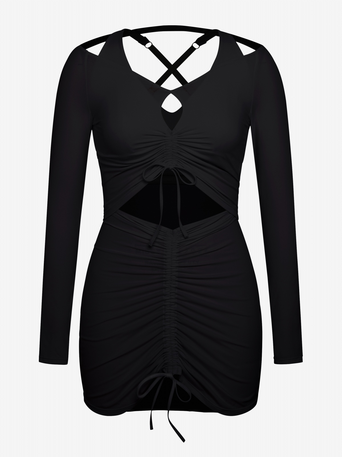 Navigate the urban jungle and beyond in our City Girl Hike Shelf-Bra Dress, featuring a comfortable jersey fabric, and a stunning front keyhole cutout with an adjustable front drawcord.