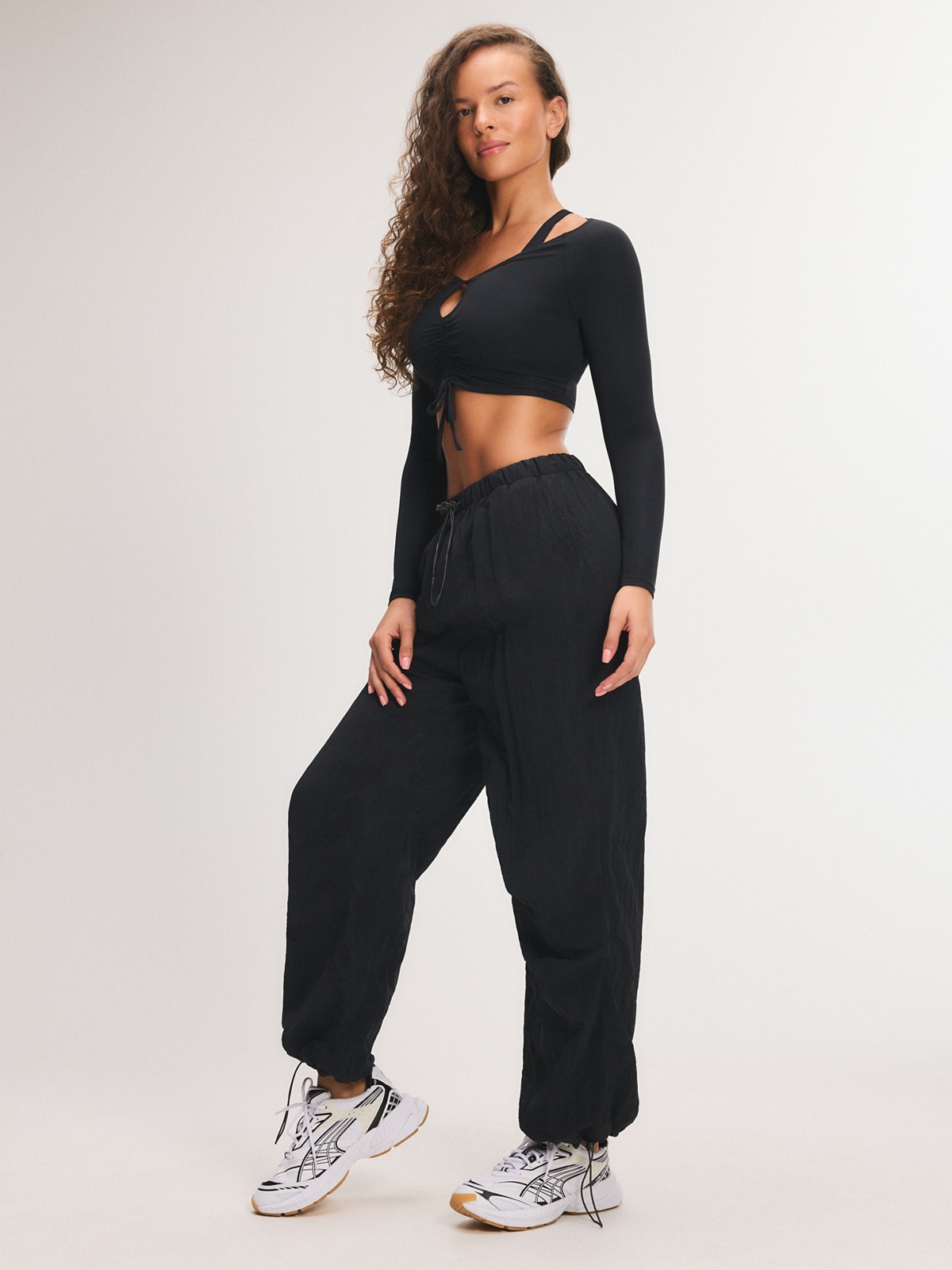 Navigate the urban jungle and beyond in our City Girl Hike Wide-Leg Pant featuring water-repellent fabric, a slick removable carabiner, and bungee drawcords at the waistband and ankles.