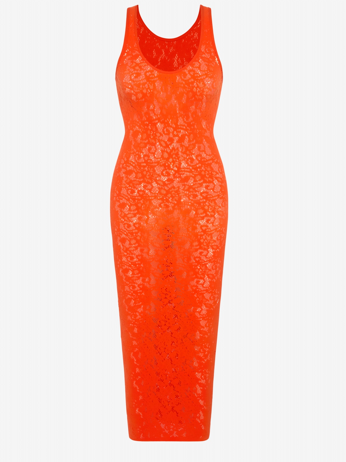 Embrace those curves in our Cling To Me Maxi Slip. Featuring an ultra-soft, stretchy knit fabric with an allover floral pattern, this semi-sheer racerback dress stuns in any setting.