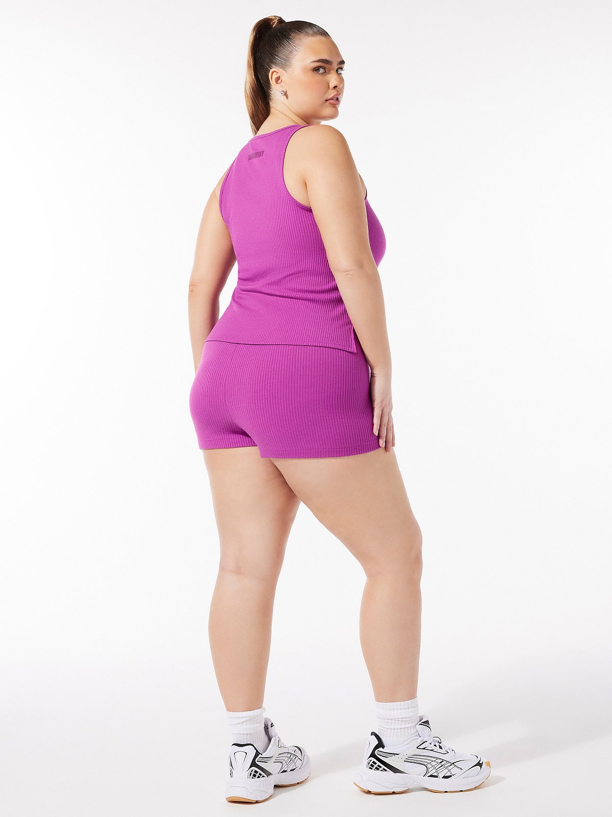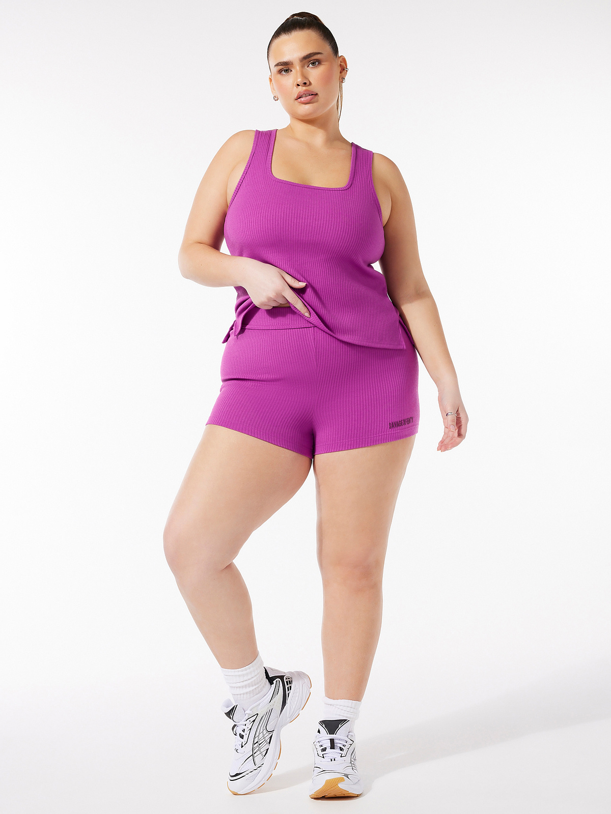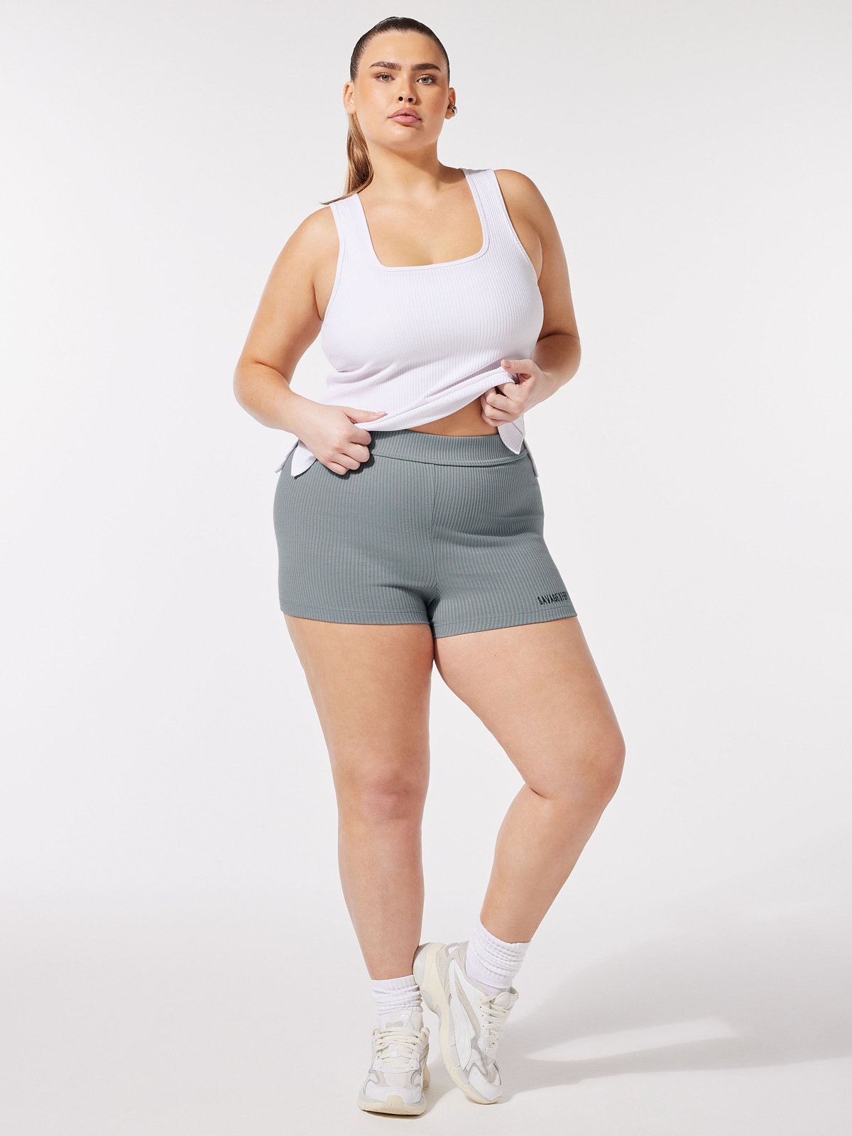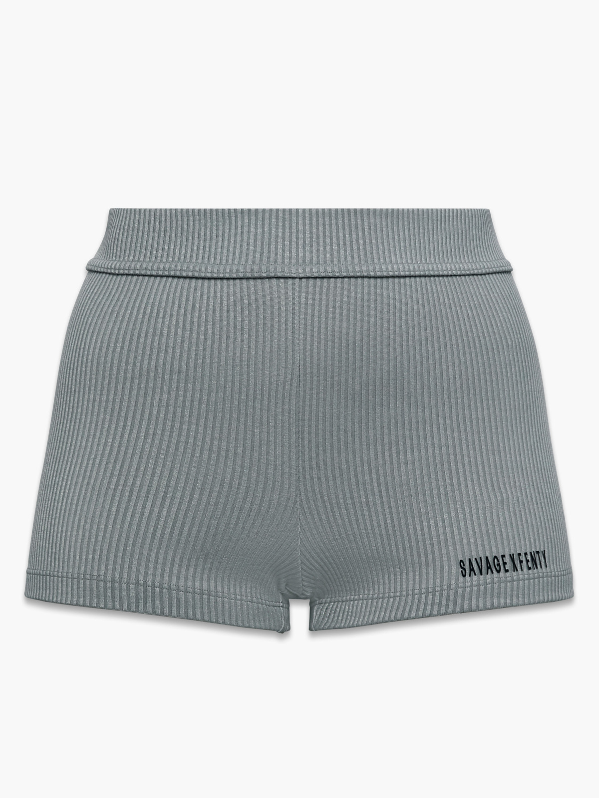 Our Essential Heavy Rib Booty Short is made from a comfortable knit fabric and features a encased elastic waistband.