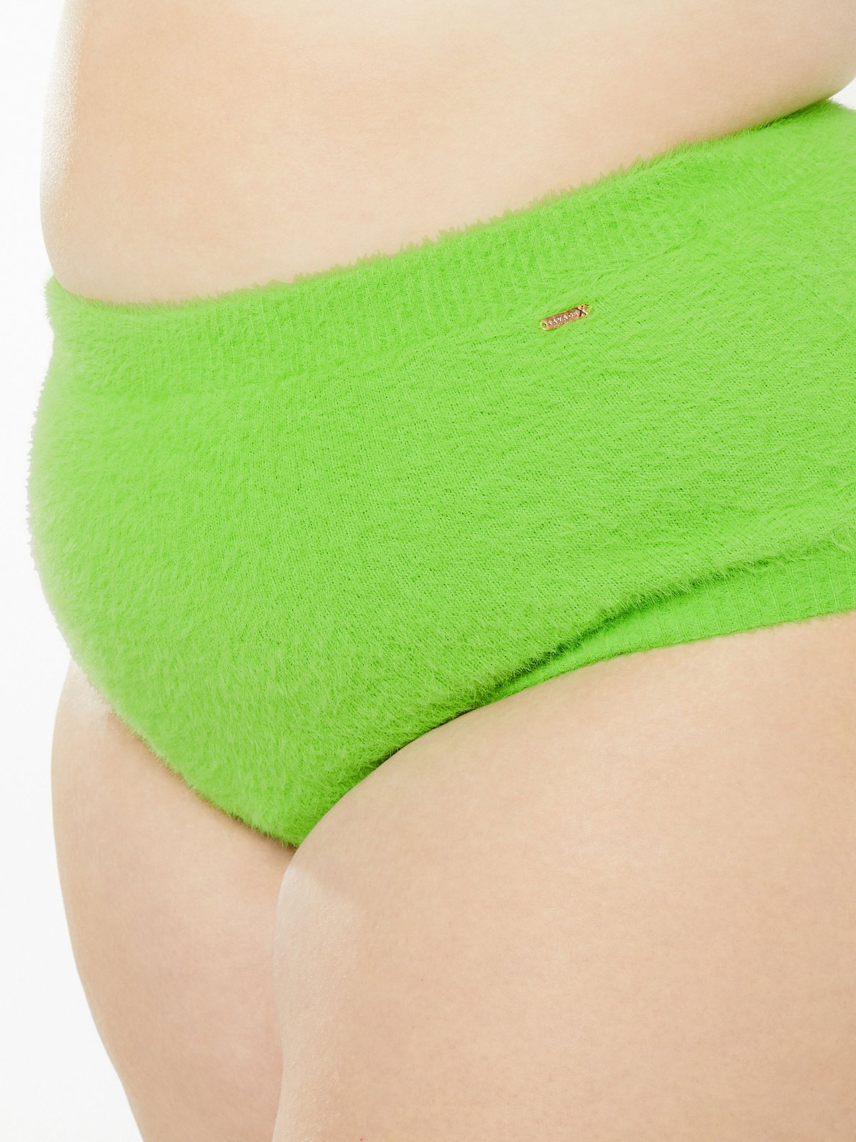 Slip into our Fluff It Up Booty Short. Featuring our all-new fluffy knit fabric, these shorts are for both lounging in and showing out. Pair with our Fluff It Up Bralette for the ultimate cozy, holiday vibe.