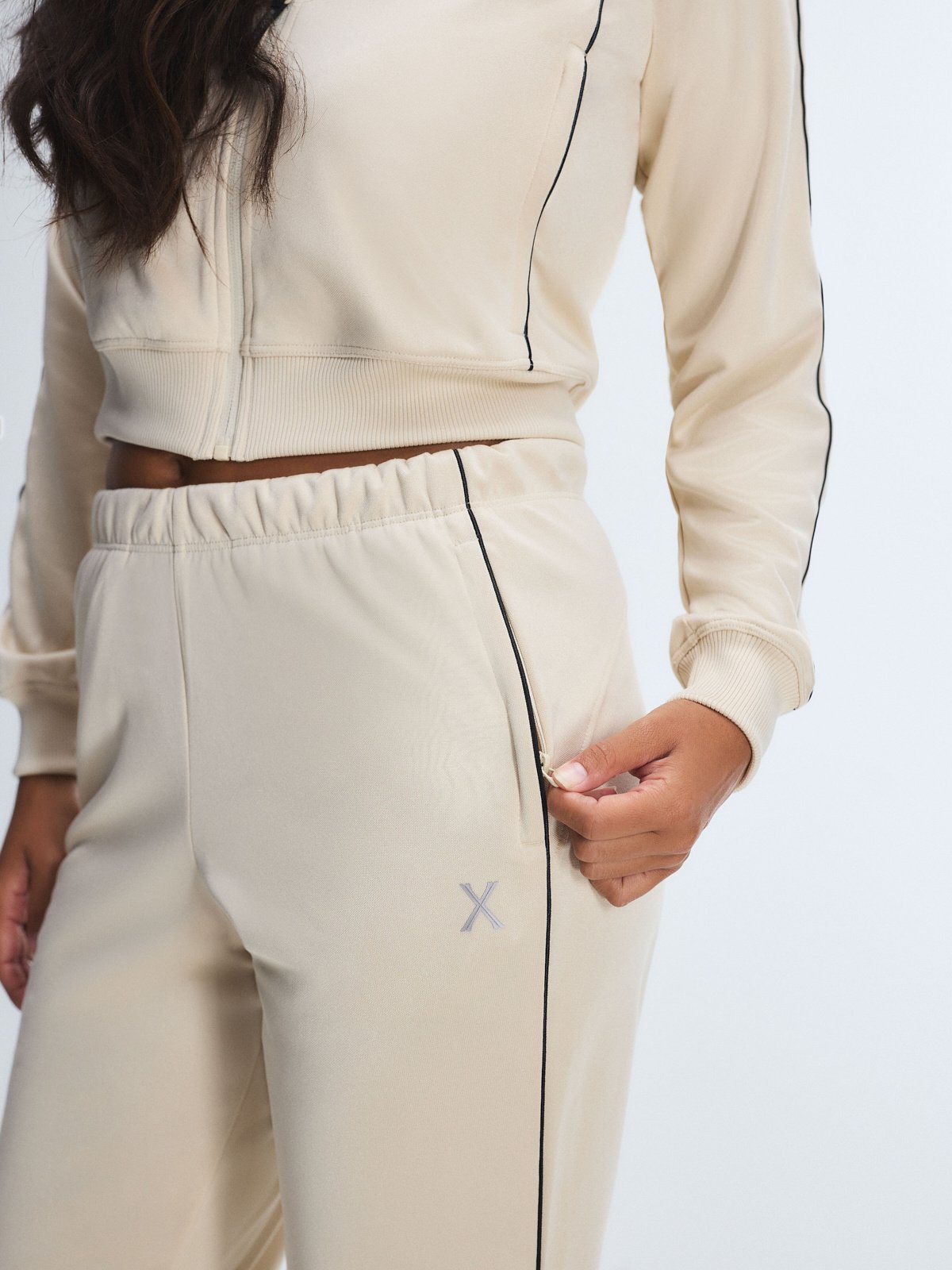 Heat things up in the Hot Track Piped Flare Pant. This throwback design features side zip pockets, piping detail, and flared leg with hem slit.