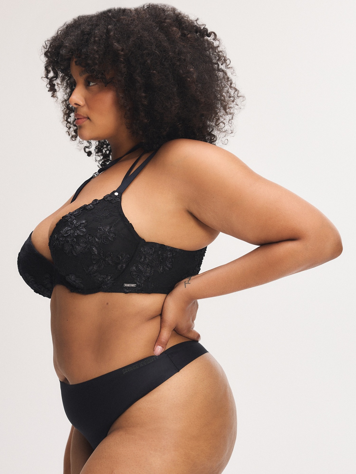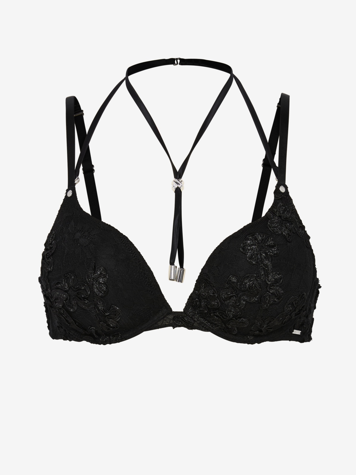 Pull an all-nighter in our Lace Nights In Push-Up Plunge Bra. Textured lace, metal rivets, adjustable straps, and a halter neck strap with a metal-tipped bolo tie make it a must have.