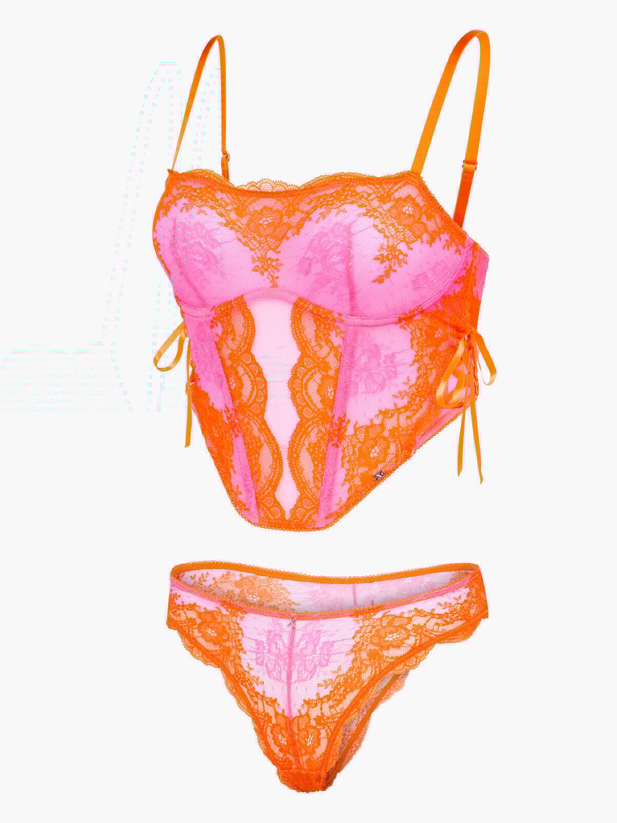 Double your pleasure in our Lacestruck Brazilian Panty, featuring a lace silhouette and two eye-catching contrast hues.