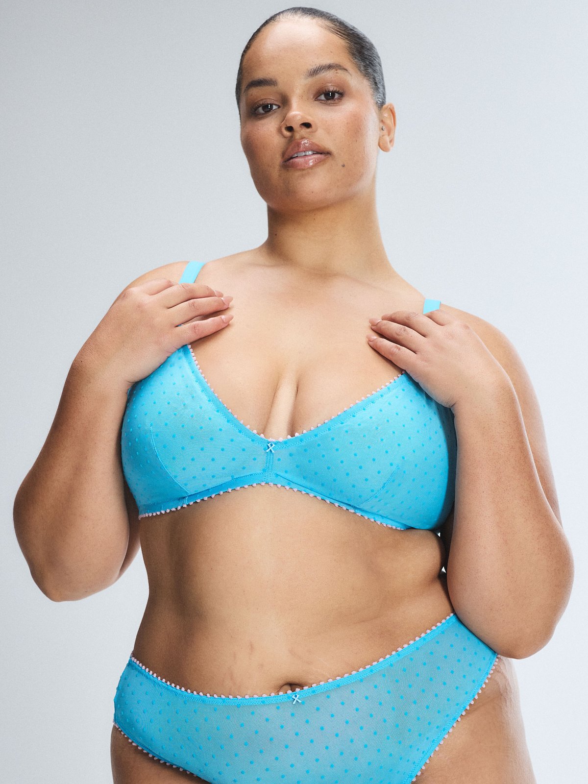 It’s all fun and games in our Mesh Around Bralette, featuring a triangle silhouette, sweet dotted mesh, and two-tone pom-pom trim that’s irresistibly cute.
