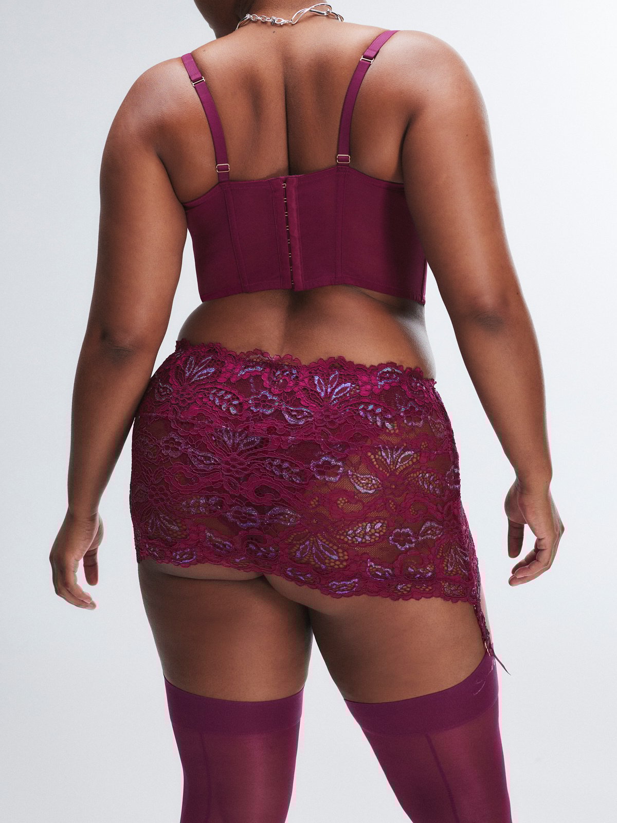 Made from soft, stretch corded lace, our Romantic Corded Lace Garter Skirt is the ultimate lingerie item. Sitting below the navel and just at the bottom of the bum, this garter skirt effortlessly hugs your curves.