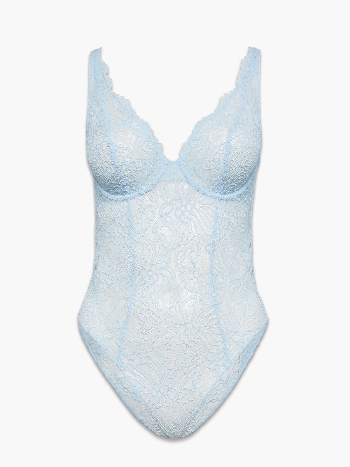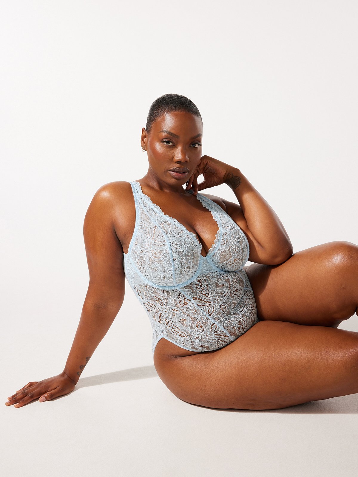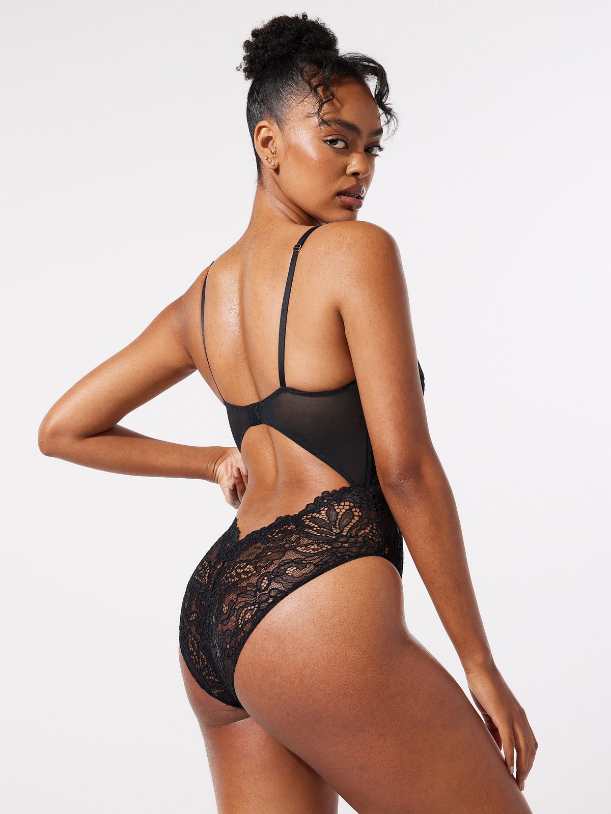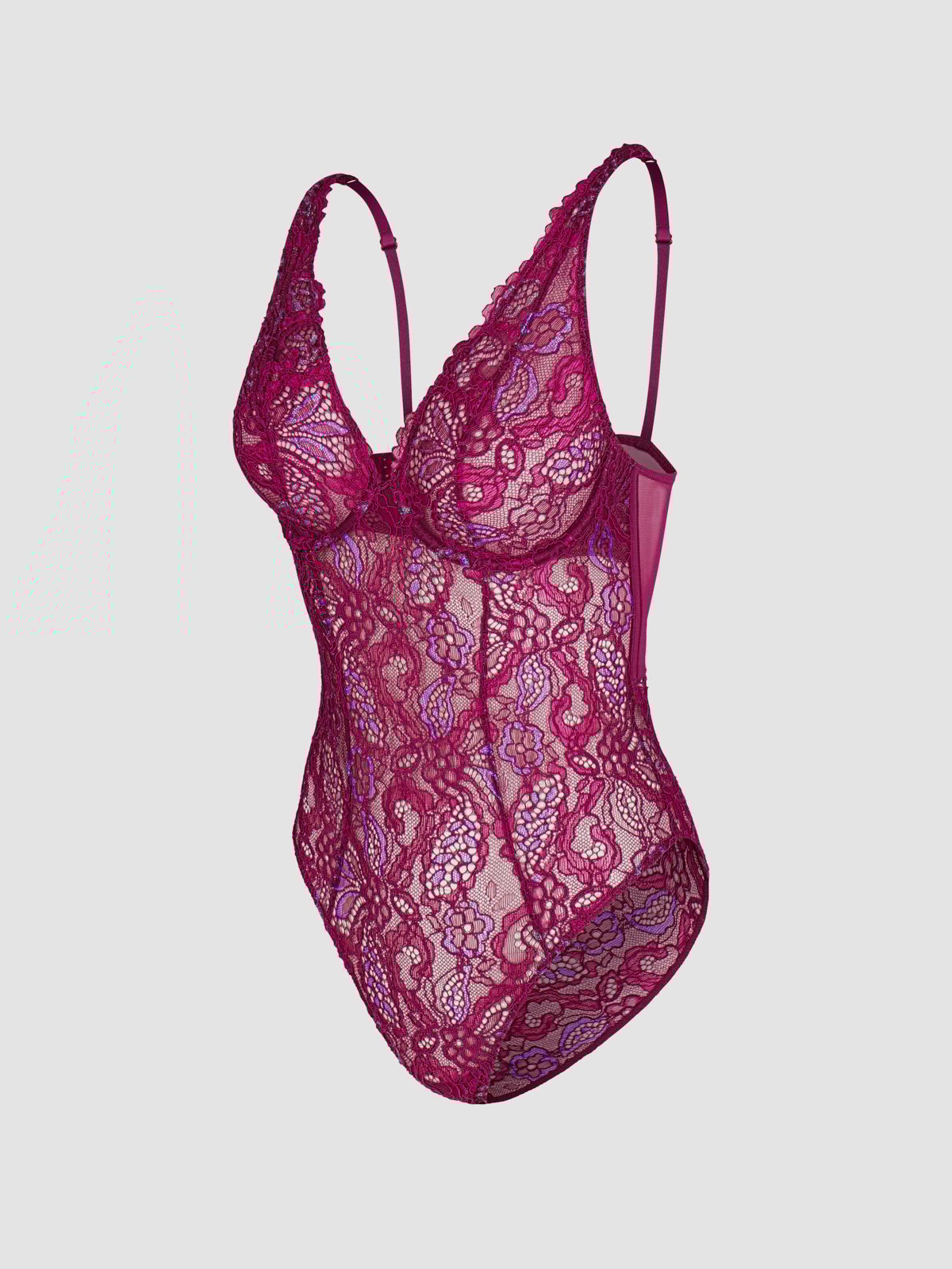 Made from soft, stretch corded lace, our Romantic Corded Lace Underwire Teddy features a plunging neckline, a sexy cutout detail at back, and adjustable straps.