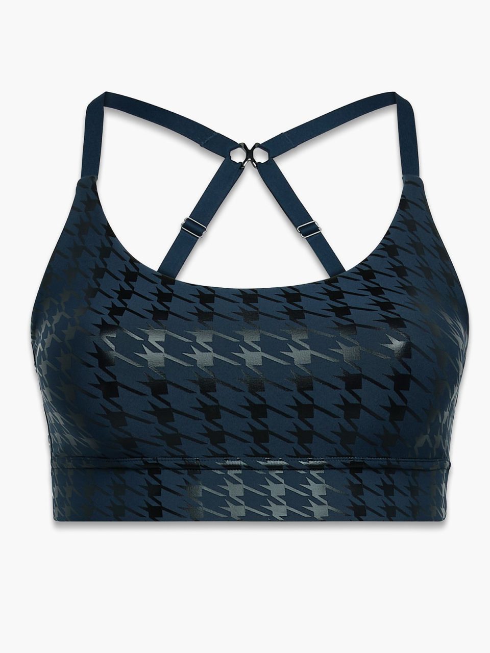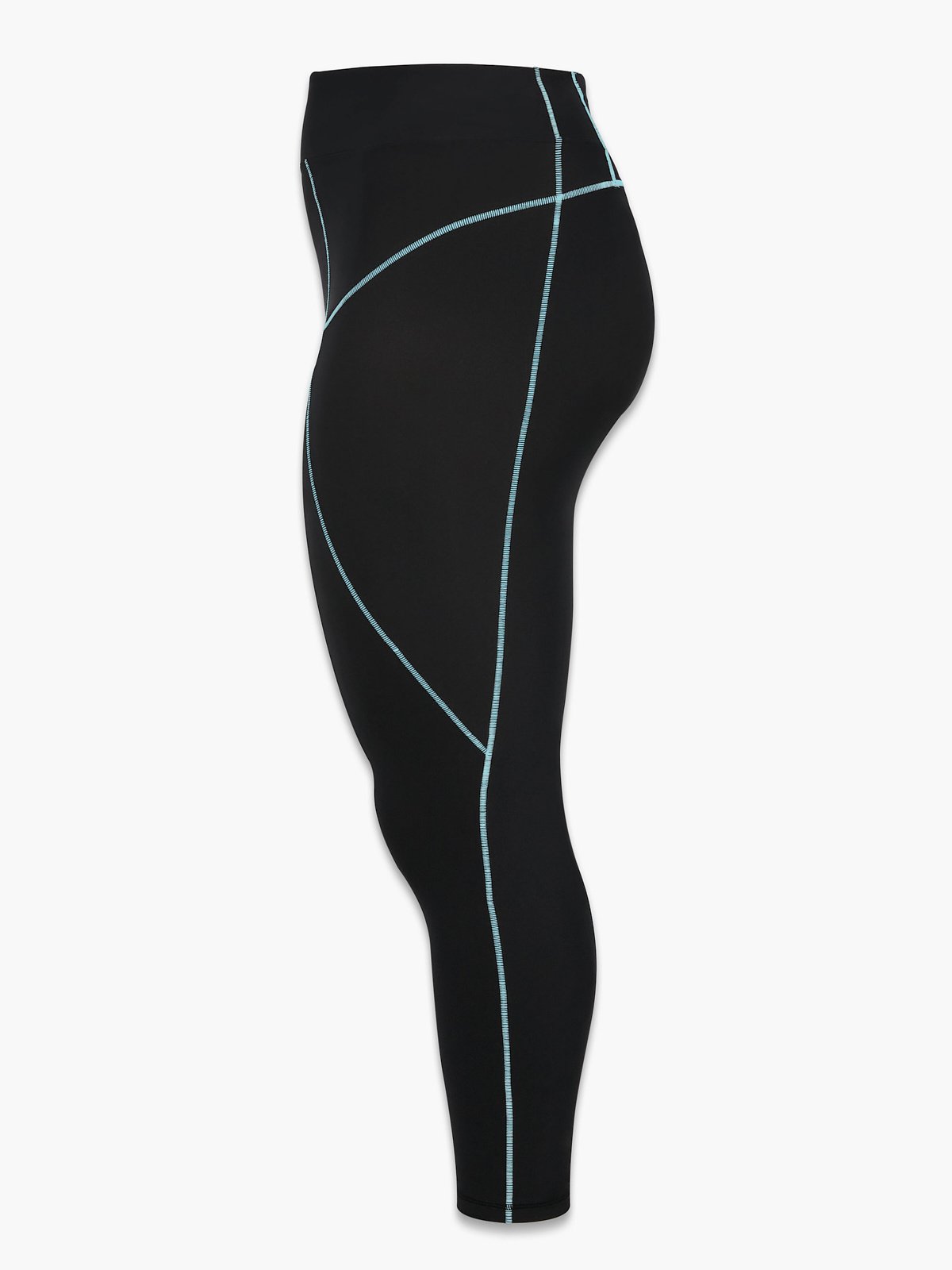 - Contrast active-stitch, flat-lock seams on side and back panels create as little friction against the body as possible