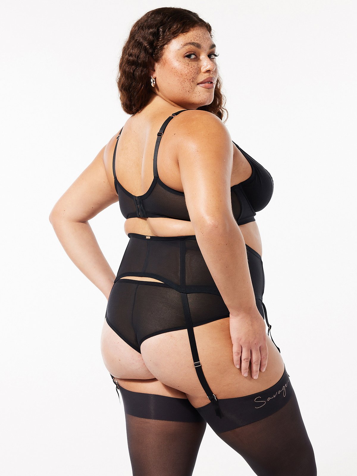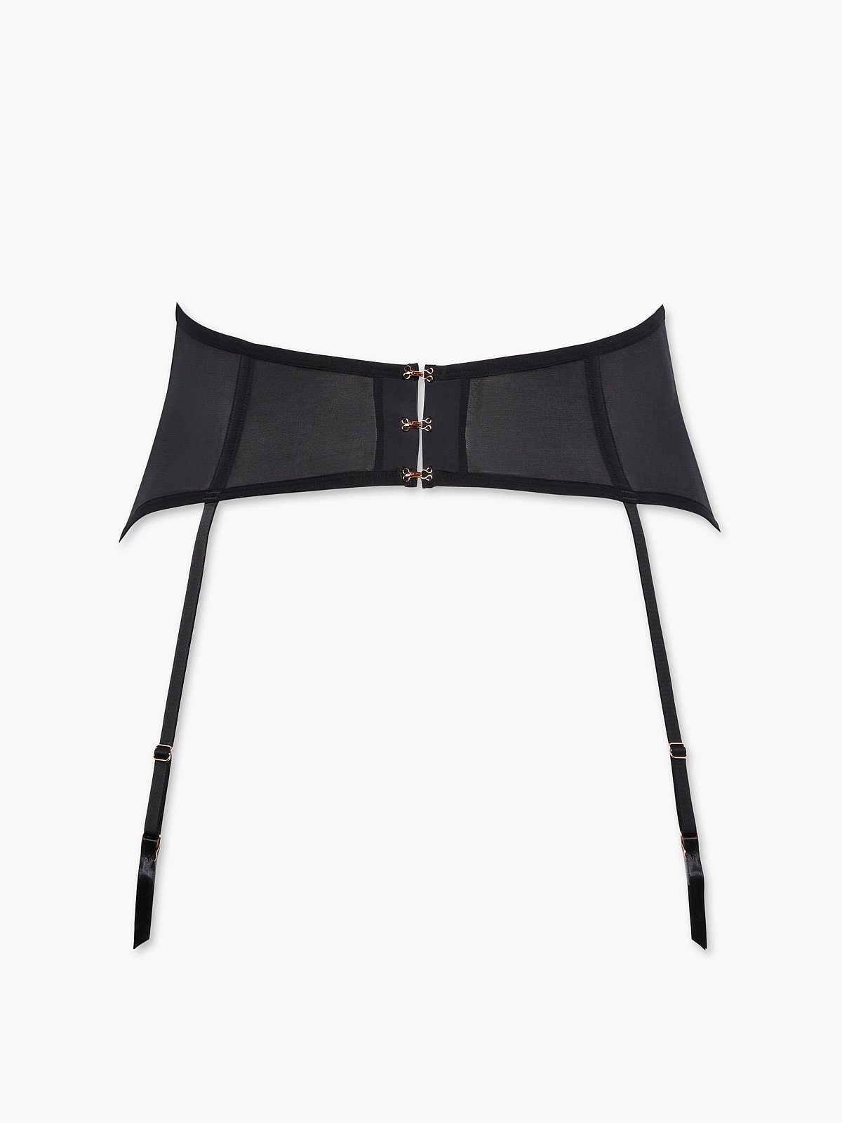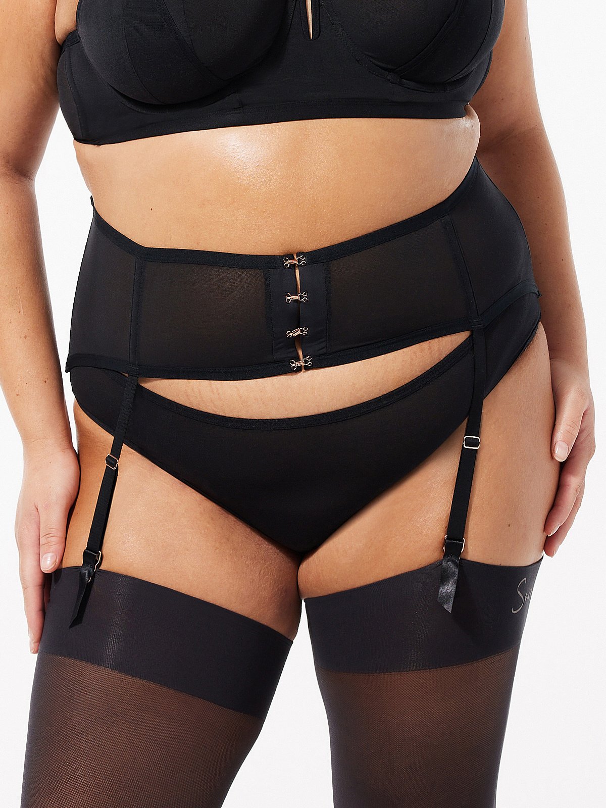 Set sights on U. Our See Thru U Garter Belt features adjustable straps, soft boning, and a statement hook-and-eye front closure.