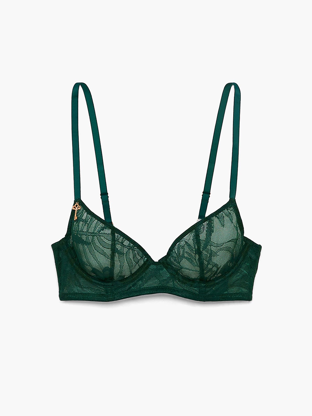 Wild hearts can’t be tamed. Our Shadowplay Lace Unlined Demi Bra features delicate shadowplay lace, power-mesh lining, adjustable straps, and a key charm detail.