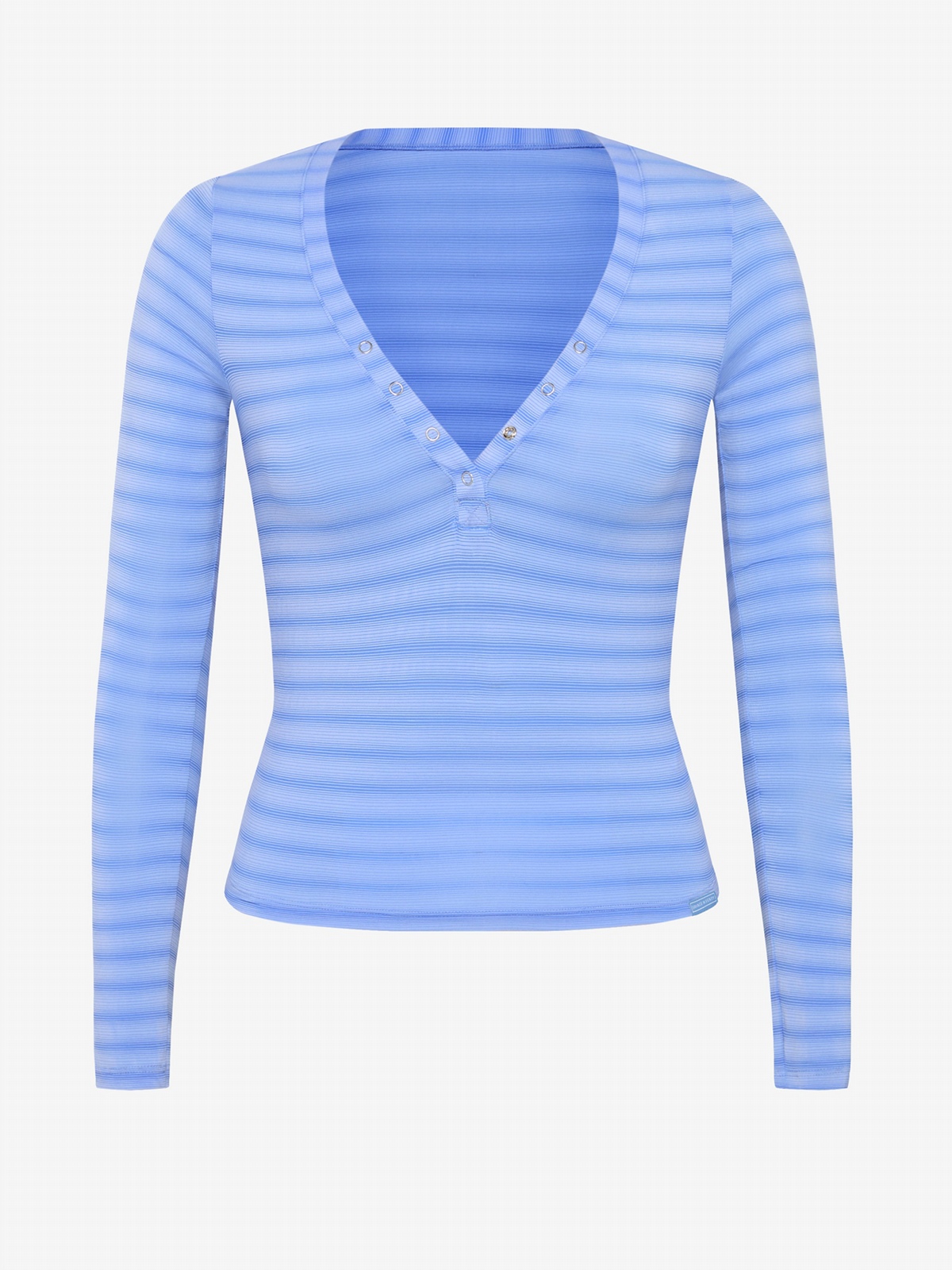 Keep it sheer and simple. Our Sheer Line Sleep Henley features a sheer, striped modal knit, and cute and sexy deep V-neckline with functional snaps.