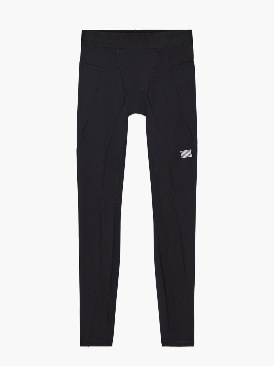 - Grosgrain logo label on leg