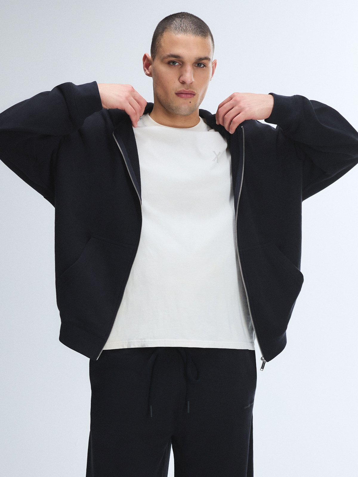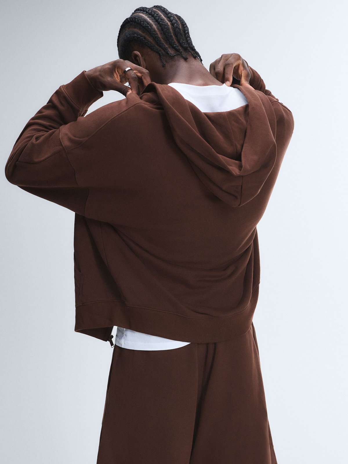 Our Terry Zip-Up Hoodie features a soft, French terry fabric in a relaxed fit, a sleek self-lined hood, and a dropped shoulder for an effortlessly chill look.