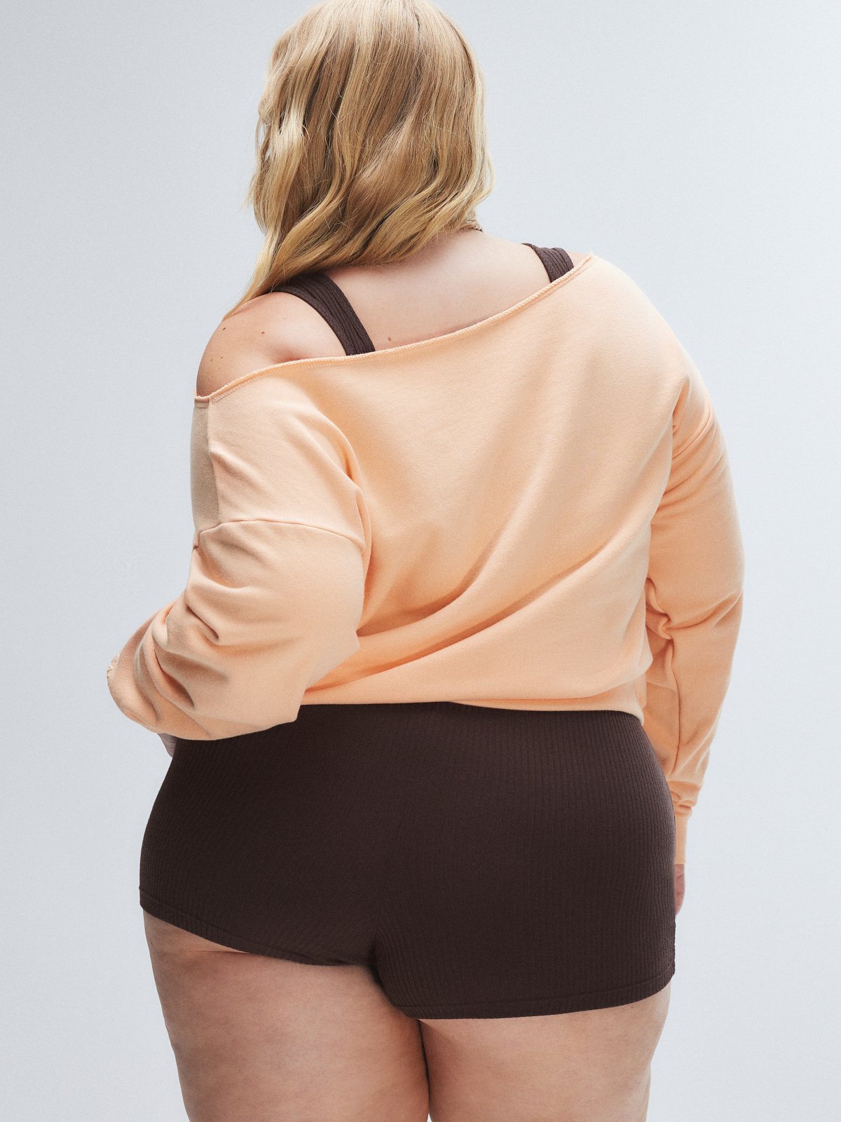 Ready for the weekend? Our relaxed fit, Weekender Terry Cut-Off Sweatshirt has an adjustable neckline with ribbed cuffs and hem.