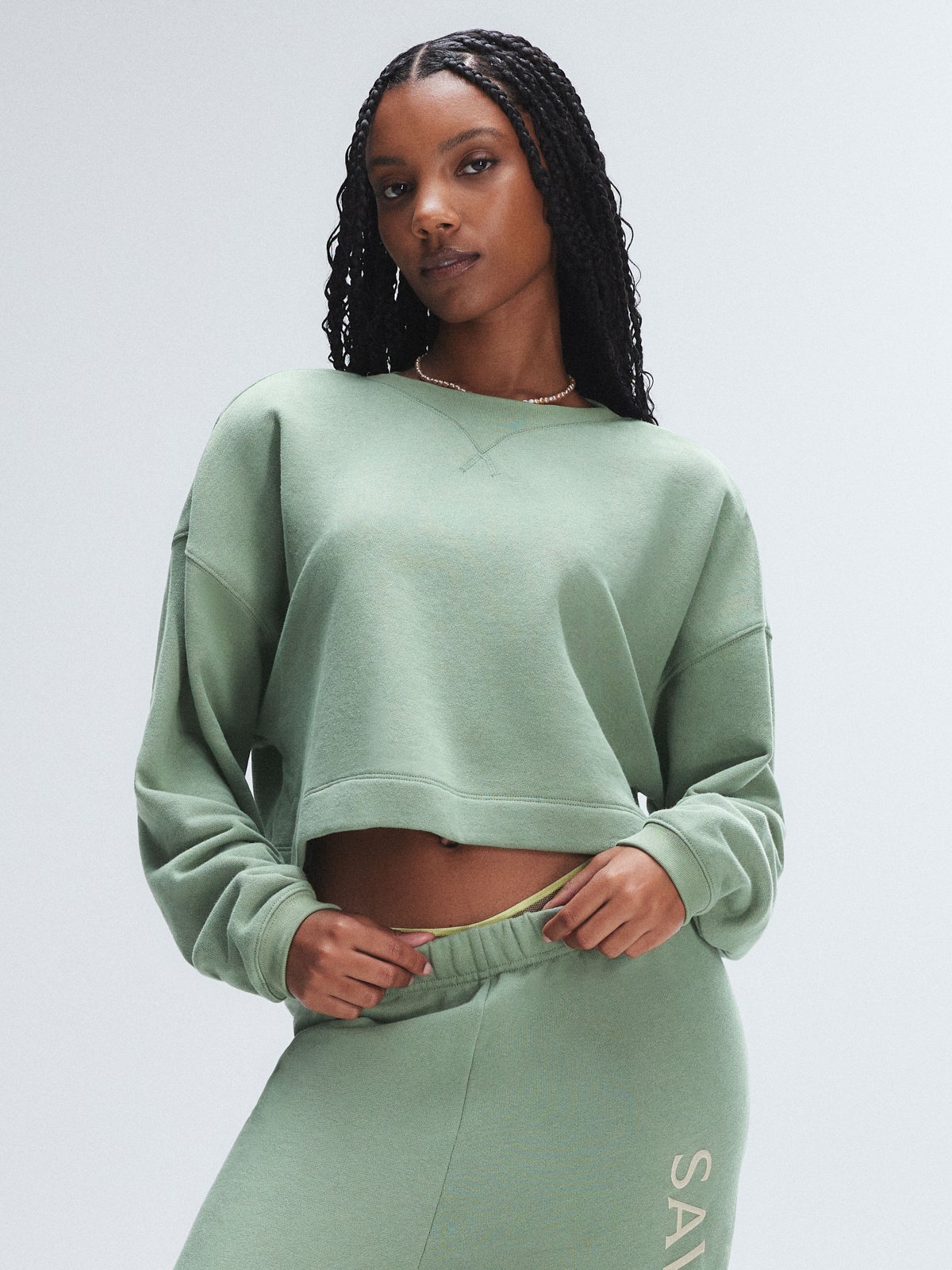 Do your days off the right way. Our Weekender Terry Sweatshirt features a comfortable 100% cotton silhouette with a relaxed, slightly cropped fit, dropped shoulders, and a cool 3D puff-print logo graphic.