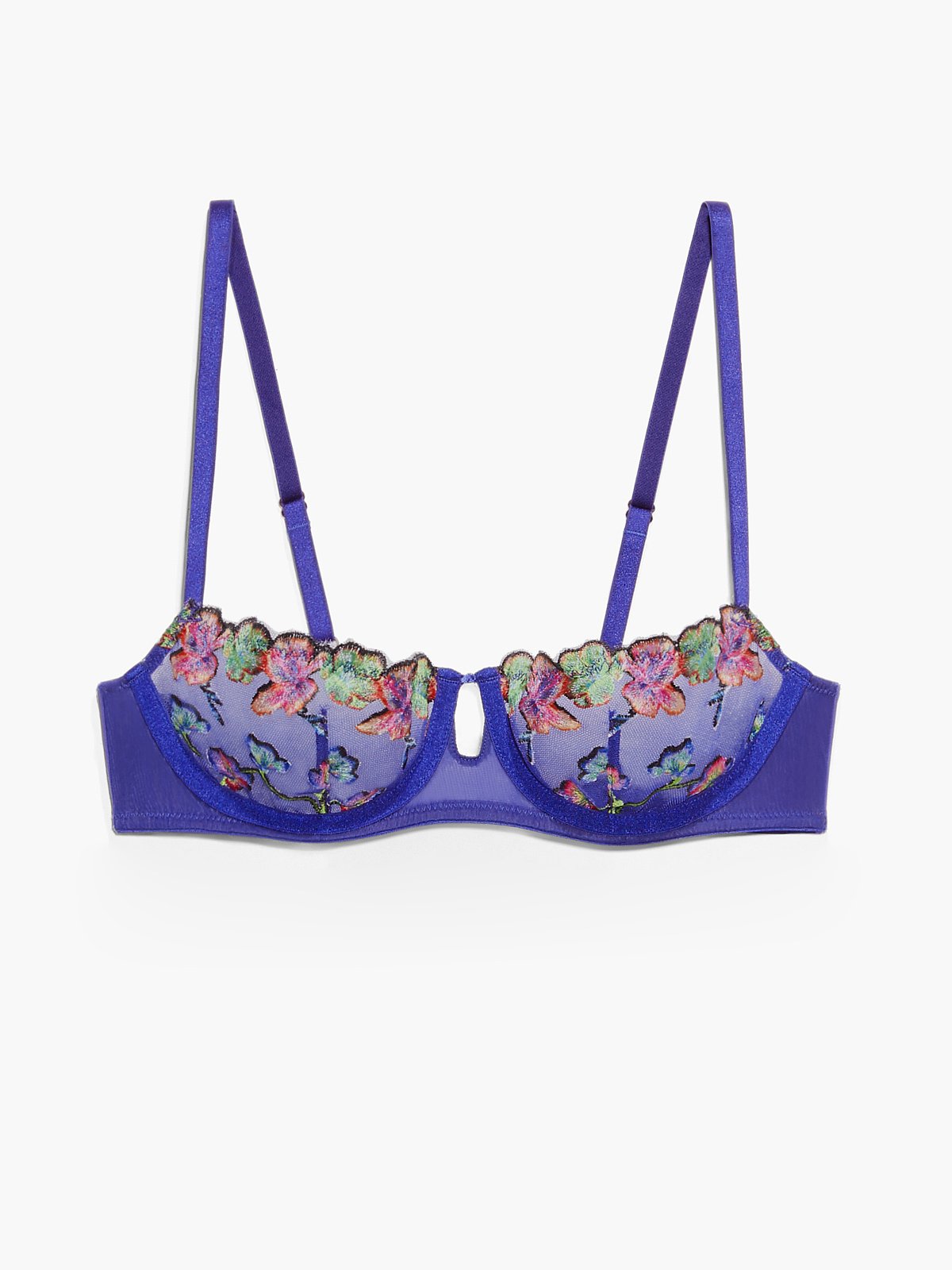 Run wild and free. Featuring orchid-print floral embroidery inspired by the Wild Wild West, our Western Wildflower Unlined Balconette Bra has invisible tulle lining, a keyhole cutout, and adjustable straps.